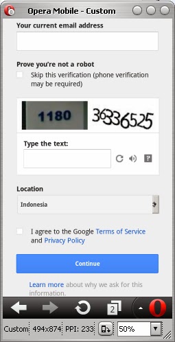 1. Buka Browser di hape anda, saya menggunakan Opera. Lalu ketik gmail.com atau http://gmail.com